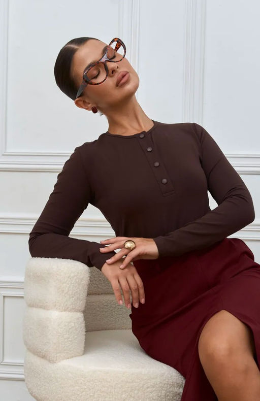 • K13381 Лонгслив хлопок КОРИЧНЕВЫЙ