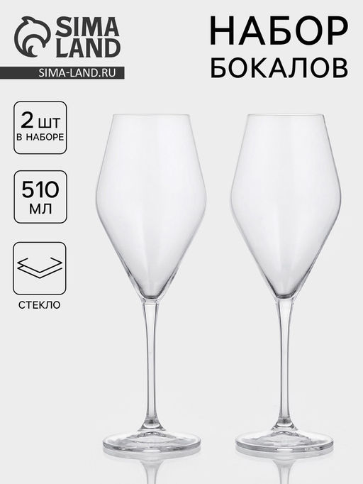 • Бокалы для белого вина CRYSTAL BOHEMIA LOXIA, 510 мл, размер одного бокала 9×27 см, набор 2 шт., стекло, прозрачные