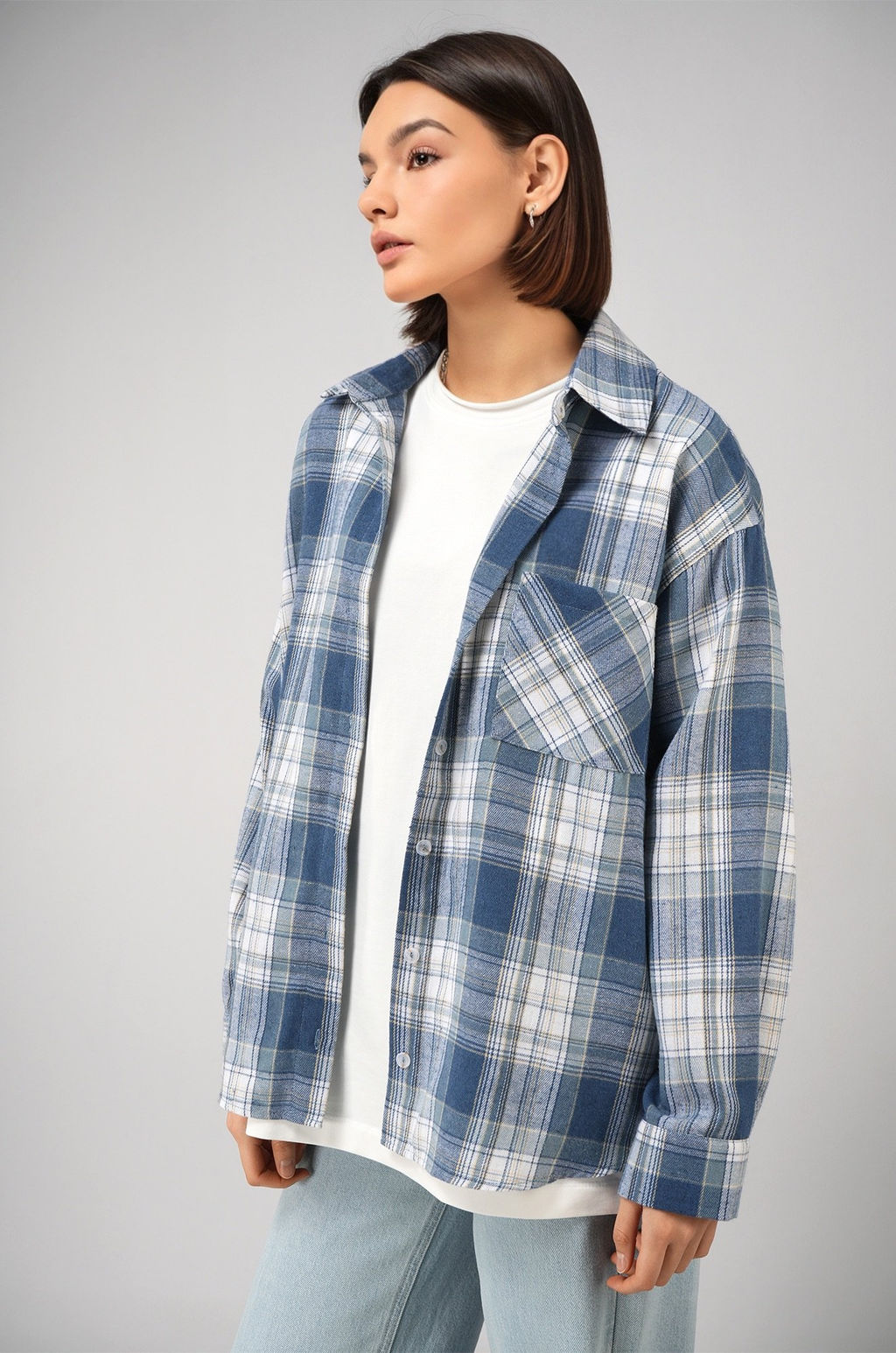 Хлопковая клетчатая рубашка для девушек и женщин идеальна для повседневного кэжуал образа. Демисезонная рубашка с длинным рукавом станет незаменимым элементом гардероба в холодное время года. Бело-голубая рубашка в стиле y2k отлично впишется в многослойные образы.