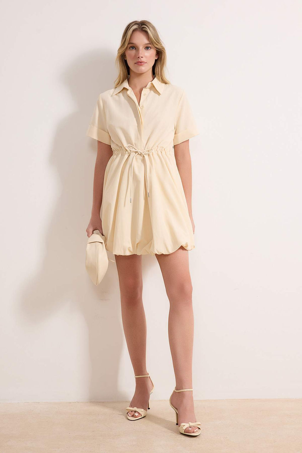 • Tas Bagc?kl? Mini Balon Etek Detayl? Dokuma Elbise TWOSS26EL00115