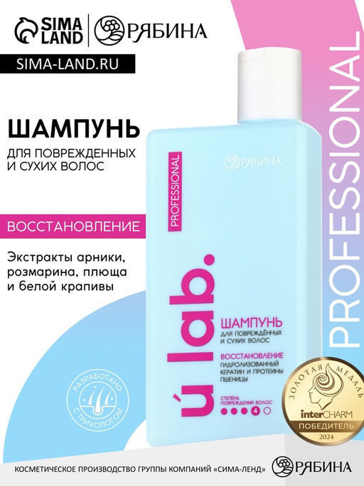 • Профессиональный восстанавливающий шампунь женский, для сухих и пористых волос с кератином и протеинами пшеницы, 250 мл ULAB