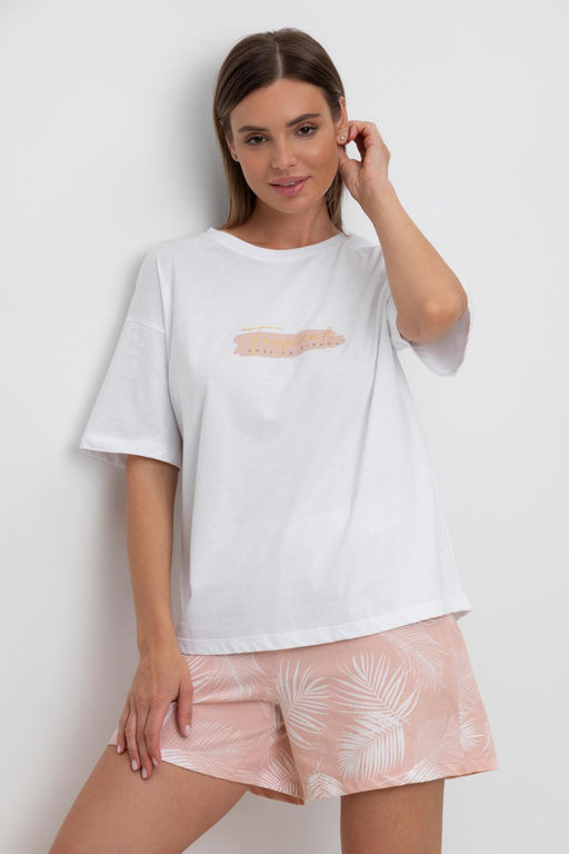 • Е 20143/белый,листья пальмы пижама жен