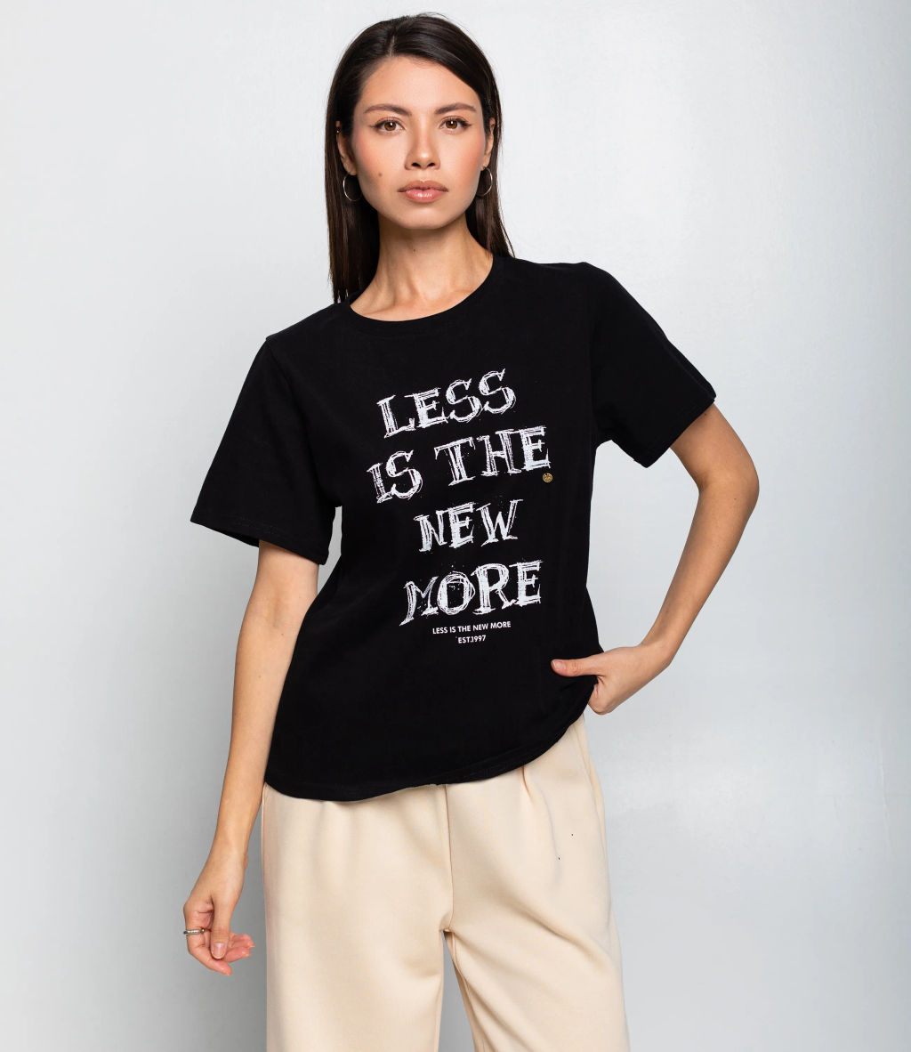 Эта футболка прекрасный выбор для вашего магазина, предлагая стильный и универсальный дизайн, который станет отличным дополнением к гардеробу ваших клиентов. Футболка прямая по силуэту, средняя длина до линий бёдер. Модель с короткими рукавами стандартной ширины, рукава заканчиваются чуть выше середины плеча. Горловина круглая, выполнена с отделочной планкой одинаковой ширины по всей окружности. Ткань выглядит как трикотаж с гладким, плотным переплетением; материал мягко облегает тело, но держит форму, без выраженной прозрачности. Швы стандартные: плечевые швы уложены ровно, боковые швы отсутствуют на видимых деталях спереди, низ изделия обработан подгибом с прострочкой. Линия плеч слегка смещена к естественному плечевому краю, без сильно заниженной или приподнятой проймы. На передней части крупный принт из текста, расположенный по центру туловища вертикально. Выполненная из 80% хлопок, 20% полиэстера, футболка обеспечивает отличное качество и приятные тактильные ощущения. Независимо от сезона, она станет любимым элементом в гардеробе ваших клиентов. На странице сайта доступна таблица размеров, что позволит вашим покупателям легко найти подходящий вариант. Установленная цена делает эту футболку доступной для широкой аудитории, что обеспечит вам высокий уровень продаж. Рост модели: 164, параметры: 83-61-89. Вы можете заказать онлайн презентацию на интересующие Вас модели. Наши менеджеры свяжутся с Вами и проведут индивидуальную видеотрансляцию, помогут составить заказ и ответят на Ваши вопросы. -- Характеристики -- Цвет: черный Пол: Женский Страна производитель: Китай Сезон: Всесезонный Материал: Хлопок, Полиэстер