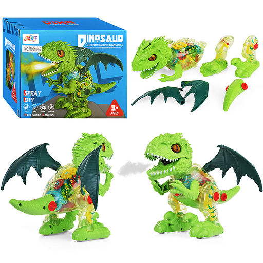 Издает звук рык динозавра и воспроизводит мелодию без слов.