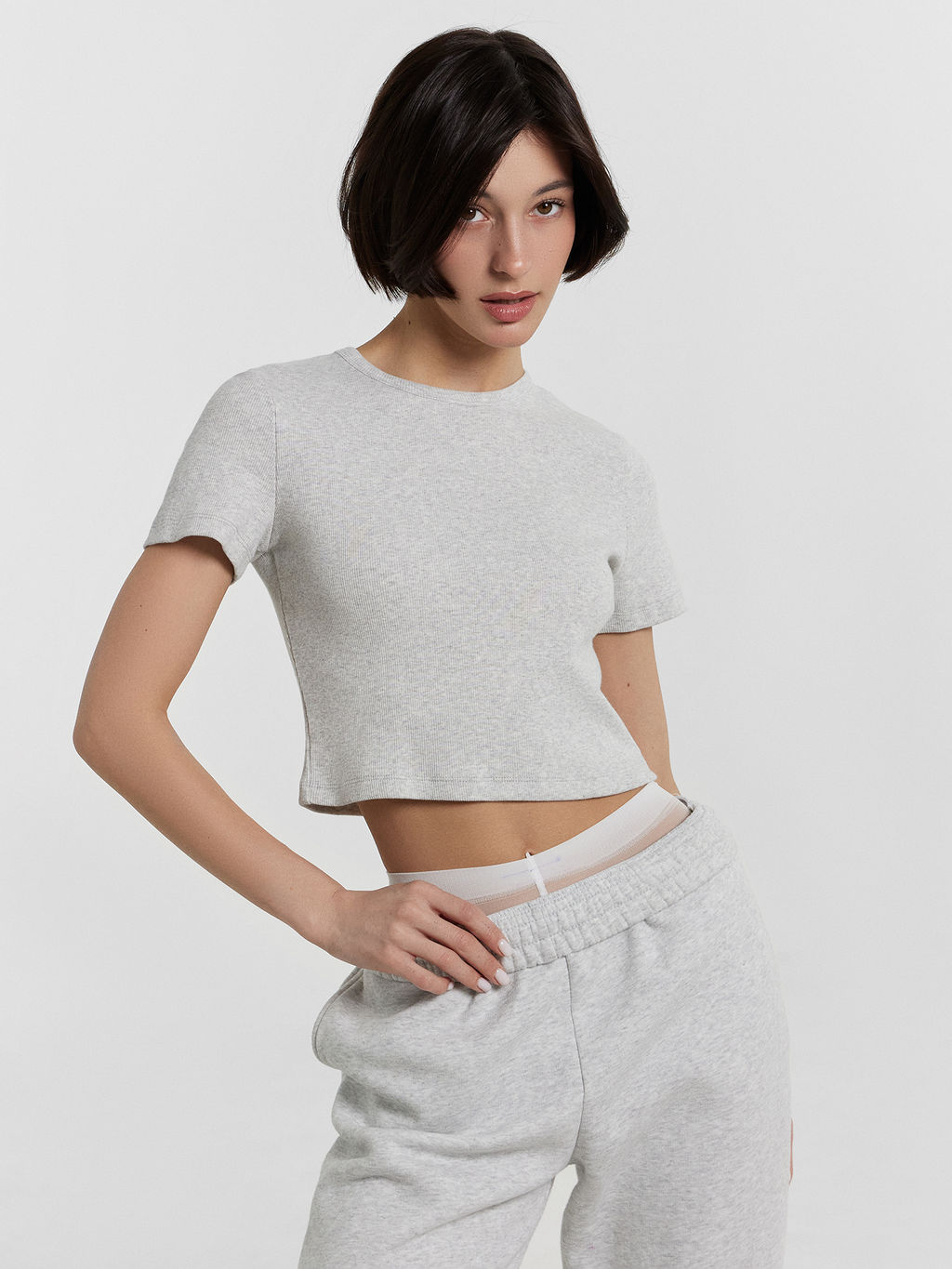 • Футболка женская серая укороченная
