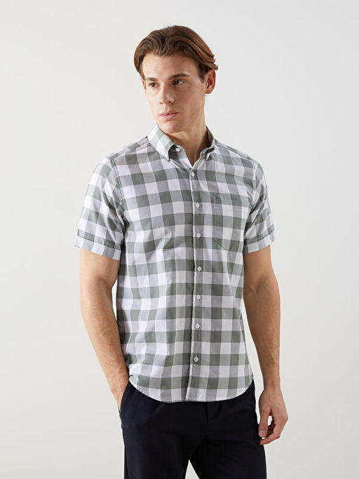 Regular Fit K?sa Kollu Ekose Arm?rl? Erkek G?mlek