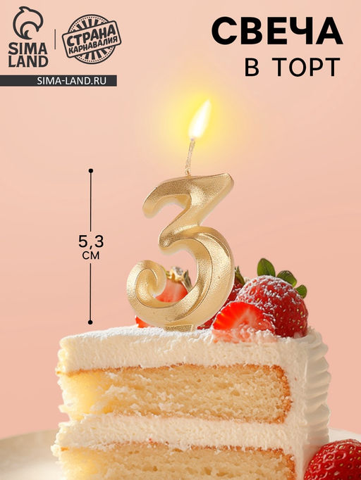 Цена за 2 шт. Свеча в торт «Театральная», цифра 3, золотой металлик