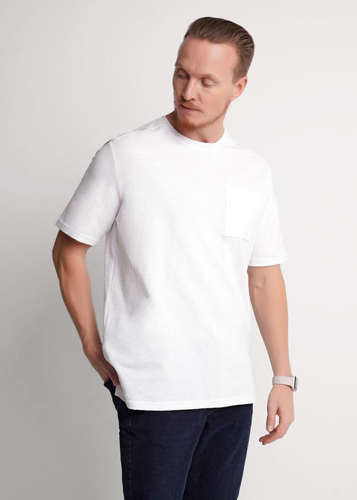 Футболка мужская с круглым вырезом горловины из хлопкового фактурного полотна "вафля". Футболку дополняет карман по груди и боковые разрезы. Отлично подойдет для прогулок и встреч с друзьями.