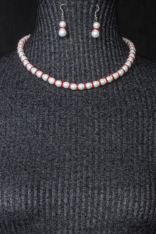 Великолепный комплект (Колье + серьги), украшен стразами. Длина колье: 50 см. + 5 см. Серьги: 4 см..­