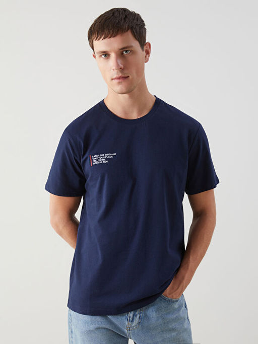 • Bisiklet Yaka K?sa Kollu Bask?l? Penye Erkek Ti??rt