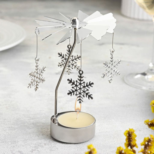 • Подсвечник на 1 свечу «Карусель вращающаяся со снежинками», серебряная, металл