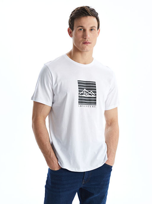• Bisiklet Yaka K?sa Kollu Bask?l? Penye Erkek Ti??rt