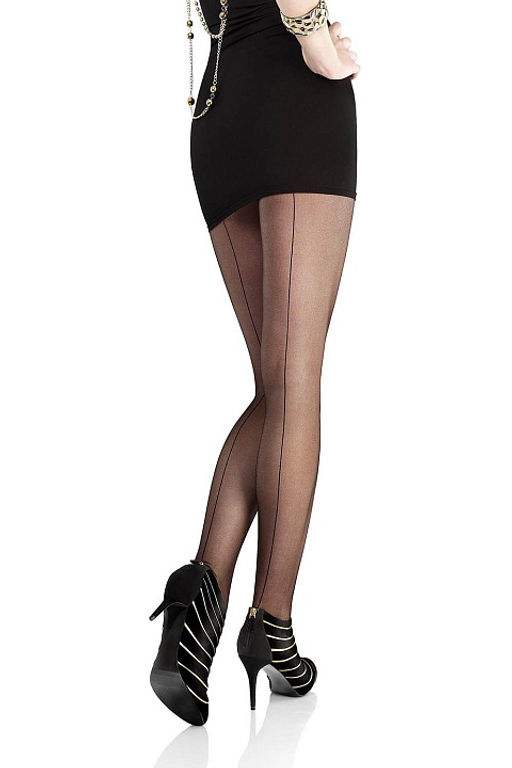 Черные колготки из микросетки Flores 516 20 den с чувственным швом сзади. Небольшая хлопковая ластовица, широкий эластичный пояс.­