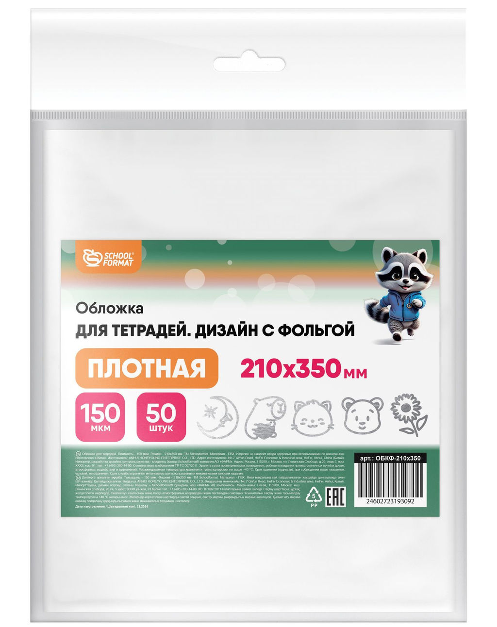• Цена за 5 шт. Обложка ПВХ 150 мкм 210х340 мм Schoolformat для тетрадей с фольгой, с индивидуальным ШК