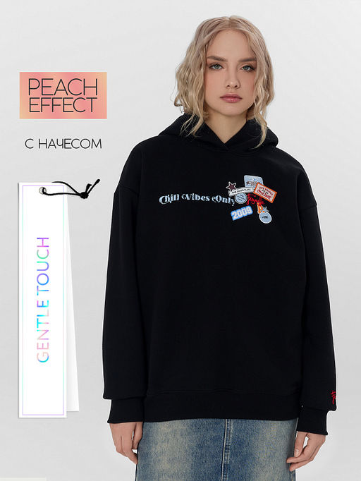 Тёплое женское худи с начесом из коллекции Gentle Touch создано для расслабленных дней. Модель выполнена из футера с пич-эффектом, который обладает исключительно бархатистой поверхностью, нежной на ощупь. Состав из хлопка и полиэстера обеспечивает баланс натуральности и практичности: хлопок дарит коже мягкость и естественную воздухопроницаемость, а полиэстер добавляет ткани прочность, помогает сохранять форму и делает уход более простым.