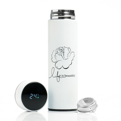 • Термос Жизнь прекрасна, 500 мл, с ситечком, с датчиком температуры