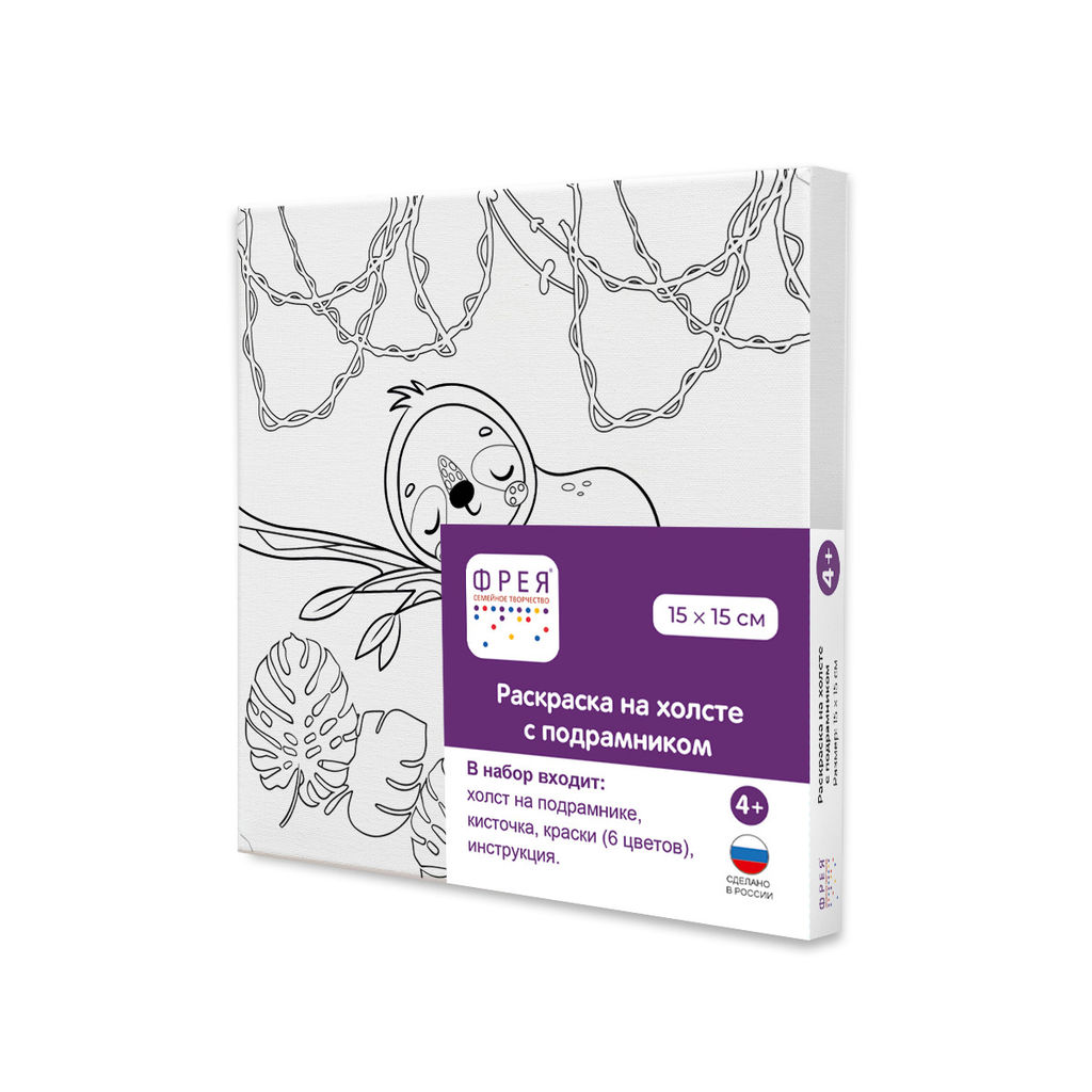 ФРЕЯ RBN/S-007 Раскраски на холсте c подрамником 15 х 15 см Спящий ленивец