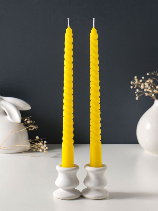 Цена за 2 шт. Свеча витая 25 см (набор 2 шт) 57 гр, 5 ч, цв. жёлтый