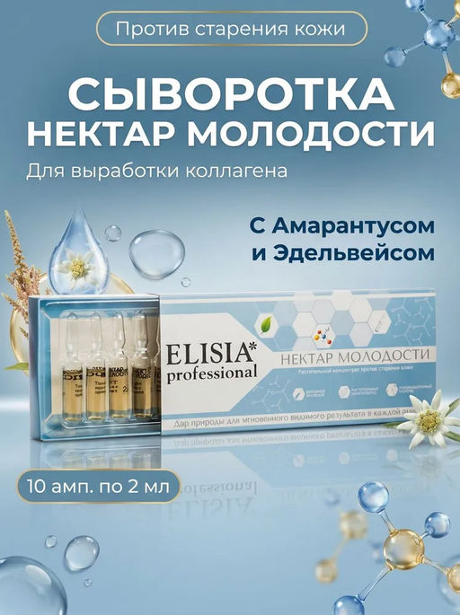 Описание товара НЕКТАР МОЛОДОСТИ Растительный концентрат для стимуляции собственного коллагена и эластина. INCI:WATER, RHODIOLA ROSEA ROOT EXTRACT, EUTERPE OLERACEA FRUIT EXTRACT, LYCIUM CHINENSE FRUIT EXTRACT,AMARANTHUS CAUDATUS SEED EXTRACT,LEONTOPODIUM ALPINUM FLOWER EXTRACT. СОСТАВ :ВОДА ,РОДИОЛА РОЗОВАЯ ЭКСТРАКТ , ЯГОДЫ АСАИ ЭКСТРАКТ ,ЯГОДЫ ГОДЖИ ЭКСТРАКТ,АМАРАНТУС ЭКСТРАКТ ,ЭДЕЛЬВЕЙС ЭКСТРАКТ. Ампульный концентрат "Нектар молодости " предназначен для выработки собственного коллагена и эластина от 35 лет.Здесь содержится в основном водные экстракты ,Амарантуса и Эдельвейса -они масляные.По консистенции экстракт слегка маслянистые ,цвет может варьировать от слегка желтого до ярко красного , зависит от время сбора и погодных условий ,в которых произрастало исходное сырье. Этот концентрат -рекордсмен по содержанию витамина С, а герметичная запайка в ампулу и масло Амарантуса и Эдельвейса ,содержащие витамин Е,замедляют разрушение,так называемое окисление, витамина С.А как мы знаем витамин С -это настоящий герой по борьбе со старением кожи . Для стойкого результата рекомендуем курсовое применение утром и вечером не менее 10 дней. Способ применения:Только наружное применение утром и вечером ! Вскрыть ампулу по круговой метке . Вылить содержимое на ладонь и подушечками пальцев нанести на очищенную кожу лица и шеи . Ампулы биполярные, поэтому могут использоваться с различными косметологическими аппаратами (гальваника, ультразвук, микротоки). Эффективность при этом увеличивается в несколько раз Срок годности 24 месяца Так как в составе ампул растительные компоненты , то возможно выпадение осадка , который не влияет на качество продукта Применение: Только наружное применение утром и вечером! Вскрыть ампулу по круговой метке. Вылить содержимое на ладонь и подушечками пальцев нанести на очищенную кожу лица и шеи. Ампулы биполярные, поэтому могут использоваться с различными косметологическими аппаратами (гальваника, ультразвук, микротоки). Эффективность при этом увеличивается в несколько раз.