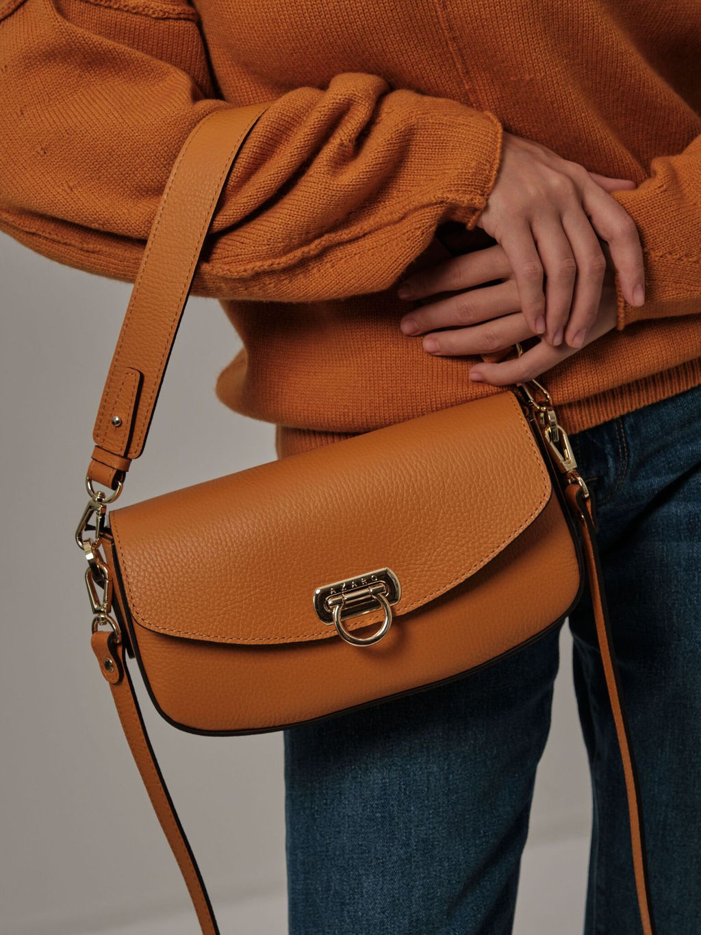 Элегантная женская сумка на плечо из натуральной кожи Azaro 31049 оранжевый карандаш станет незаменимым аксессуаром для современной девушки. Кожаная сумка багет идеально подходит для повседневного использования, будь то прогулка по городу или встреча с друзьями. Сумка кросс-боди легко носится через плечо, что обеспечивает комфорт во время ношения. Также в комплект входит короткий съемный ремень для ношения на плече. Благодаря средним размерам, она компактна и вмещает все необходимые вещи: телефон, кошелек и косметику, не создавая лишнего объема и сохраняя элегантность вашего образа. Классический дизайн сумки Azaro делает ее универсальной - она легко сочетается с любыми образами. Каждая деталь этой модели проработана с вниманием к мелочам, что делает ее не только красивым, но и функциональным аксессуаром. -- Характеристики -- Цвет: оранжевый Материал: Натуральная кожа Бренд: Azaro Тип: Сумка на плечо Страна-изготовитель: Россия Высота, см: 17 Ширина, см: 27 Глубина, см: 7 Материал подкладки: Хлопок Количество внутренних отделений: 1 Количество внешних карманов, шт: 1 Тип застежки: Магниты Формат А4: не вмещает Высота ручек, см: 23 Длина плечевого ремня, см: 120 Вес товара, г: 440 Ручки: На запястье;На локоть;На плечо Пол: женская коллекция Группа товара: Сумки