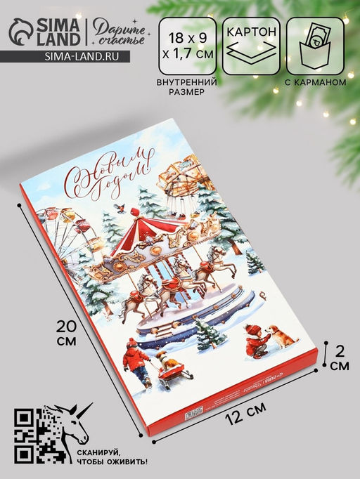 • Цена за 5 шт. Коробка подарочная сборная «Новый год 2026: Карусель из лошадей», 20×2×12 см