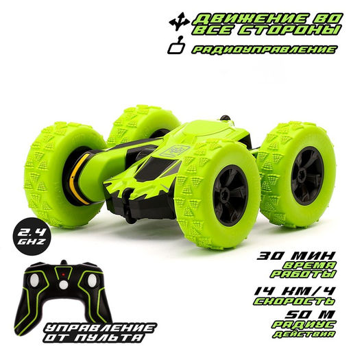 Радиоуправляемая машина-перевёртыш «Трюкач» способна подстраиваться под любые дорожные условия! Её пары колёс вращаются независимо от корпуса, что позволяет легко преодолевать препятствия.Особенности радиоуправляемой машинки-перевёртыша«Трюкач» невозможно перевернуть, чтобы он не смог дальше ехать. Транспорт спроектирован так, что при переворачивании на крышу или бок машина сможет продолжить свой путь.Пары колёс крутятся независимо от кузова машины.Колёса резиновые, что обеспечивает хорошее сцепление с дорогой.Развивает скорость до 14 км/ч.Без задержки реагирует на все команды с пульта.Вы сможете контролировать точные движения техники вперёд, назад, вправо, влево, а также делать развороты на 360֯.Машина работает от аккумулятора 4,8 В 700 мА∙ч (в комплекте). Провод для зарядки в комплекте.Время работы от полностью заряженного аккумулятора: 30 минут.Время зарядки аккумулятора: 80 минут.Дальность действия пульта: 50 м. Работает от 2 батареек типоразмера AA (нет в комплекте). Тип питания: От аккумулятора. Набор: Нет. Вид транспорта: Внедорожник. Назначение транспорта: Без назначения. Для кого: Для мальчика. Возраст: От 3 лет. Количество батареек: 2. Напряжение аккумулятора, В: 4.8. Максимальная скорость, км/ч: 14. Время работы, мин: 30. Радиус действия, м: 50. Ёмкость аккумулятора, mAh: 700. Масштаб: 1/28. Дополнительные функции: Перевёртыш. Типоразмер батареек: AA. Тип механизма: Радиоуправление. Тип транспорта: Наземный. Лицензионная модель: Нет. Батарейки в комплекте: Нет. Траектория движения: Во все стороны. Тип питания пульта управления: От батареек. Аккумулятор в комплекте: Да. Марка автомобиля: Без марки. Бесплатная доставка: Да. Размеры товара: 15/7/16.