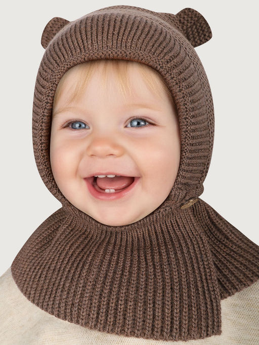 Зимняя полушерстяная балаклава шлем УМКА. Балаклава обладает удобной эргономичной формой, которая надежно и плотно облегает голову крохи, прикрывая ушки, а мягкая резинка вокруг лица не натирает и не жмет. Особенностью представленной модели является манишка, заменяющая шарф, которая регулируется по шее ребенка и застегивается на маленькую пуговку.