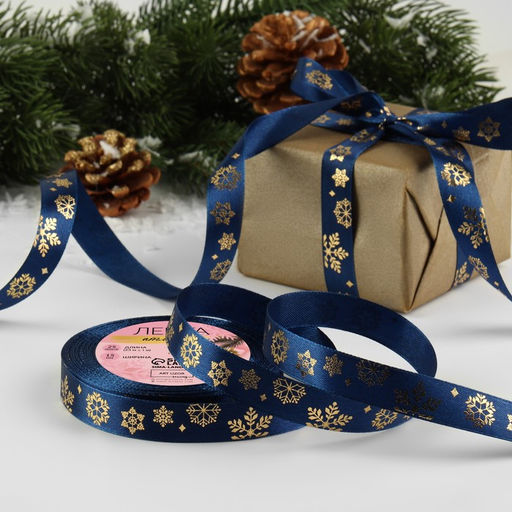 • Лента атласная с тиснением «Фигурные снежинки», 15 мм, 23±1 м, синяя