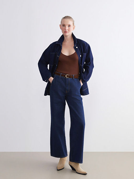 Beli Kemerli Wideleg Kad?n Jean Pantolon