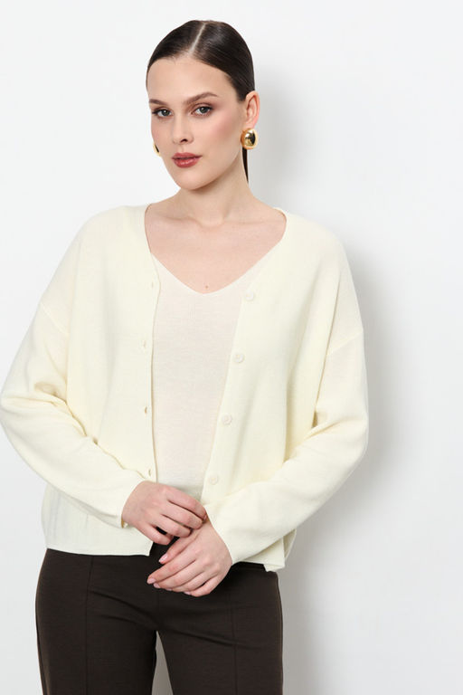 Представляем ваш новый любимый комплект с фактурой жемчужный узор! Кардиган свободного силуэта с пуговицами и длинными рукавами в спущенную пройму создает уют, а лаконичный топ на тонких бретелях идеально подходит для многослойных образов или как самостоятельный элемент. Изделие выполнено из мягкой пряжи.