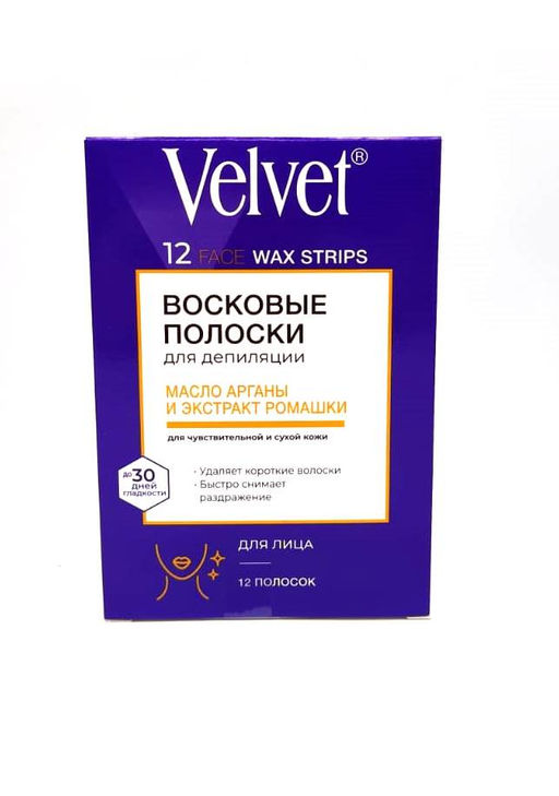 • Депилятор "Велвет" ВОСКОВЫЕ Полоски д/депиляции лица чувств.к. мас.Арганы,Ромашка(12шт).24 /919258/