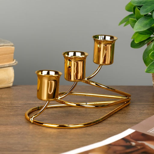 Металлический подсвечник на 3 свечи «Капли», золото, 14×8×8 см
