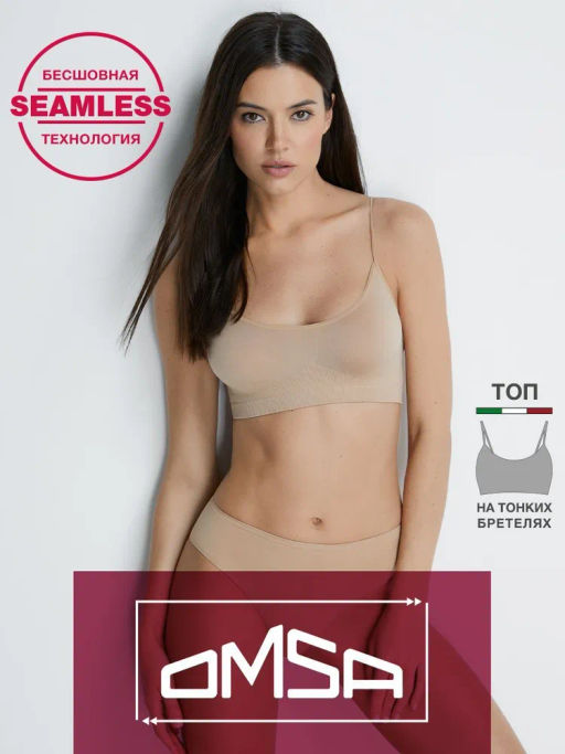 Топ деликатно повторяет изгибы тела и создает ощущение абсолютного комфорта. Универсальный женский топ отлично подходит на каждый день и сочетается практически с любым гардеробом. Женское белье OMSA Seamless - создано для того, чтобы чувствовать себя уверенно каждый день.
