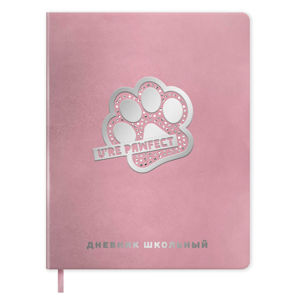 Дневник школьный арт. 72504 / 15 СЕРЕБРЯНАЯ ЛАПКА (кожзам: А5+; твёрдый переплёт, материал обложки: искусственная кожа "Плонже"; декор: аппликация из резины, аппликация из страз; способ крепления блока: ниткошвейный; вн. блок: 48 л., белый офсет 80 г/м?, печать в одну краску, справочный материал: универсальная шпаргалка; отделка среза: фольгирование; закладка: одно ляссе; форзац: печать пантоном; индивидуальная упаковка: ПЭТ-пакет)
