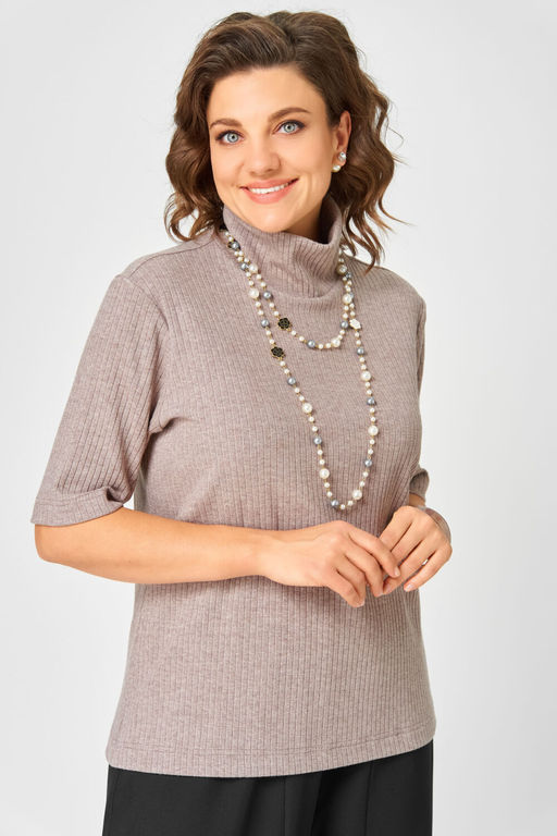 высоким воротом и рукавом 3/4 удобная, временами не заменимая и модная вещь. Джемпер изготовлен из мягкого трикотажного полотна в рубчик.