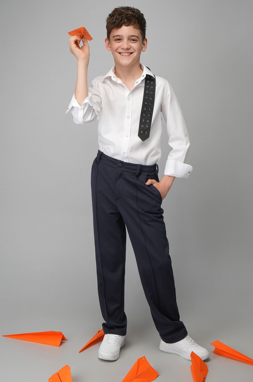 ВИДЕО https://img0.happywear.ru/videos/H/F/HF33122_т.синий_video.mp4 СОСТАВ 55% хлопок, 42% полиэстер, 3% эластан Всегда к месту черные брюки для мальчика, которые легко впишутся и в классический школьный гардероб, и в повседневный образ. Удобные, стильные и при этом максимально комфортные на каждый день.