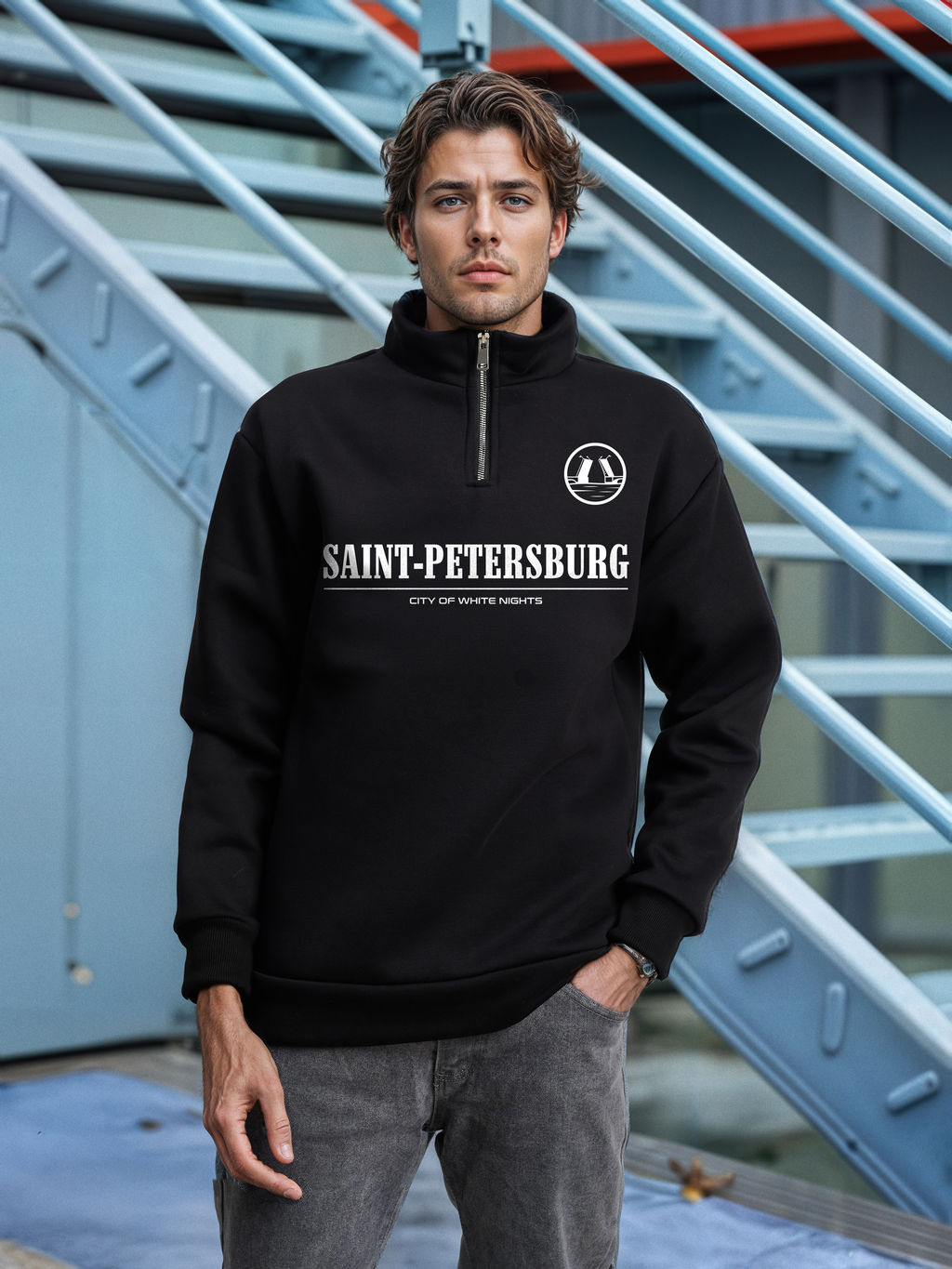 Толстовка мужская с зип-воротником "Saint Petersburg" черный