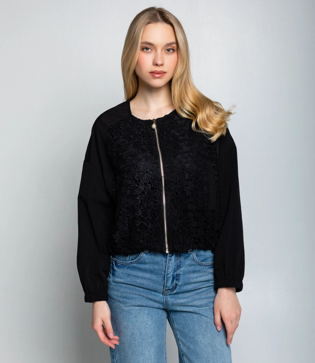 Бомбер это одежда, которая подчеркивает привлекательность любой женщины. Данный бомбер отлично подойдет для вашего ассортимента и будет востребован в теплый сезон и в демисезонный период. Его приобретают оптовые покупатели, которые ценят сочетание качества и цены. Крой подчеркивает изящность фигуры. Бомбер имеет классический укороченный крой с длинными рукавами и круглым воротником без отворота. Центральная застежка выполнена на молнии с небольшим декоративным элементом в виде подвески. Передняя часть изделия украшена сложным цветочным узором из ткани с рельефной вышивкой, создавая эффект текстуры. Рукава и боковые части выполнены из более гладкого материала без узоров, с эластичными манжетами на запястьях. Общий стиль бомбера сочетает в себе элегантность за счет вышивки и повседневность благодаря простому крою и застежке на молнию. Для пошива использован материал 100% полиэстер, который характеризуется отличным качеством. Даже после многократных стирок изделие не утратит первоначальной привлекательности. Вы сможете предлагать его своим покупателям с радостью. Обратите внимание на цвет: он является насыщенным и полностью соответствует фотографии на сайте. Чтобы вы были уверены в размере, мы представили на странице таблицу размеров. Воспользовавшись ею, вы сможете сами обмерить себя и удостовериться в правильности выбора. Установленная нами оптовая цена является доступной. Для оптовых клиентов действуют выгодные условия сотрудничества и гибкая система скидок; уточнение минимального заказа и сроки поставки можно узнать у менеджера.­