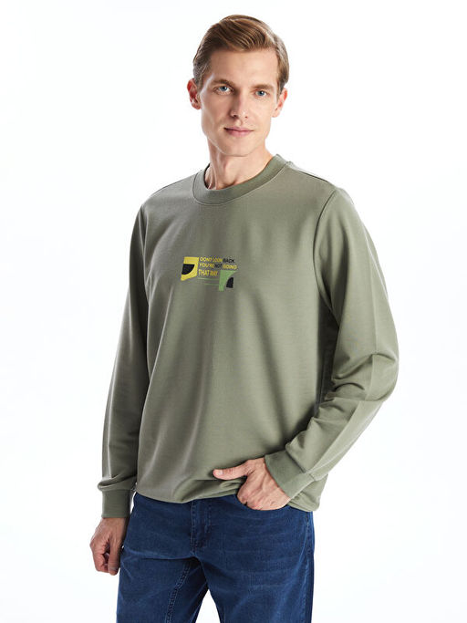 Bisiklet Yaka Uzun Kollu Nak??l? Erkek Sweatshirt