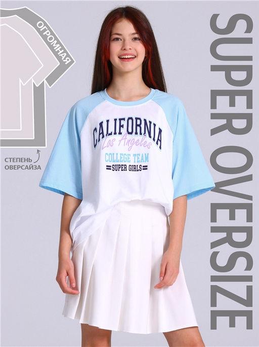 футболка,хлопок 100%,кулир / хлопок 100%,белый+светло-голубой109 / - / Супер Калифорния / - / - / -,Футболка для девочки выполнена из кулира - тонкого хлопкового полотна. Изделие прямого силуэта, с коротким рукавом-реглан и круглым вырезом горловины. На полочке печать. Уход: только машинная стирка (руками не стирать!) при температуре 40 градусов, без предварительного замачивания. Изделия с печатью перед стиркой необходимо вывернуть на изнаночную сторону.