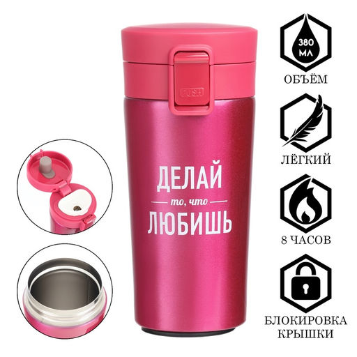 • Термокружка с ситечком Делай то, что любишь, 380 мл, сохраняет температуру до 8 ч