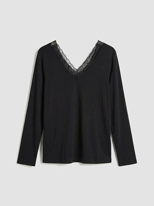 V Yaka Dantel Detayl? Kad?n Pijama ?st