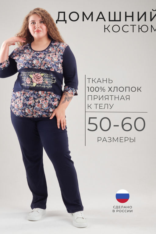 Женский костюм с брюками из хлопкового трикотажа и удлиненной кофтой с карманами.