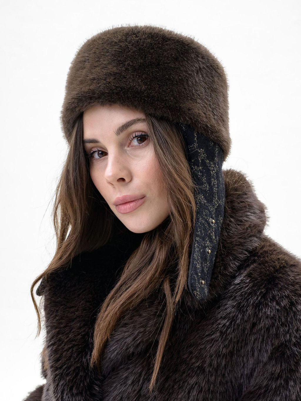 • Т26-21 Таблетка кубанка черное золото с мехом "норка"