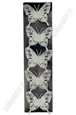 Новогодние украшения 9,5*8 см "Бабочки" (5 шт) SF-7805, белый