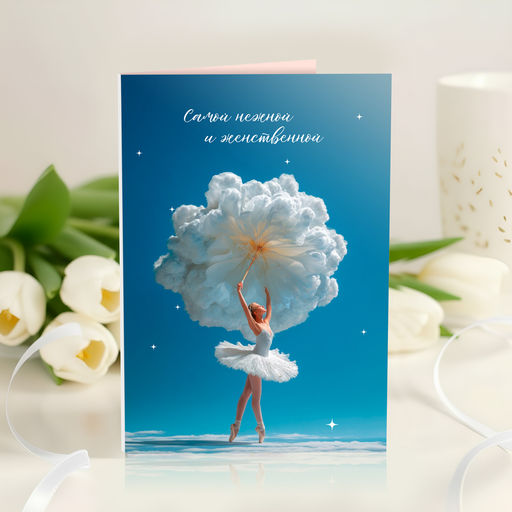 • Открытка 4 шоколадки "Самой нежной и женственной (балерина с цветком)"