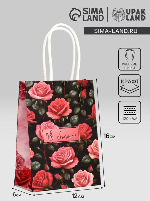 Этот пакет крафт на 8 Марта создан специально для того, чтобы сделать ваш подарок девушке ещё более особенным. Плотность бумаги 120 г/м2 гарантирует прочность и надёжность пакета, позволяя безопасно переносить даже хрупкие и ценные вещи.