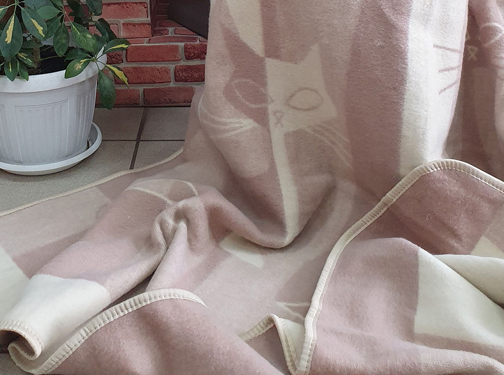 • Одеяло шерсть мериноса 100% 160*205 "Кошки" бежевый (Узбекистан)