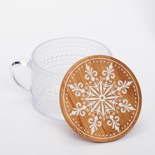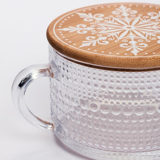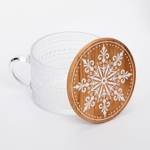 Кружка стеклянная новогодняя «Снежинка», 450 мл, с крышкой