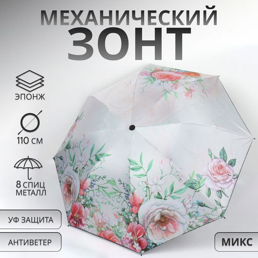 Зонт механический «Букет», эпонж, 4 сложения, 8 спиц, R=47/55 см, d=94 см, МИКС
